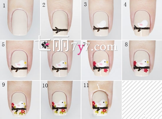 2015的春天流行什么样的美甲图案呢?下面,小编将为你带来一款鸟语花香的美甲教程,详细教程帮你轻松学起来。