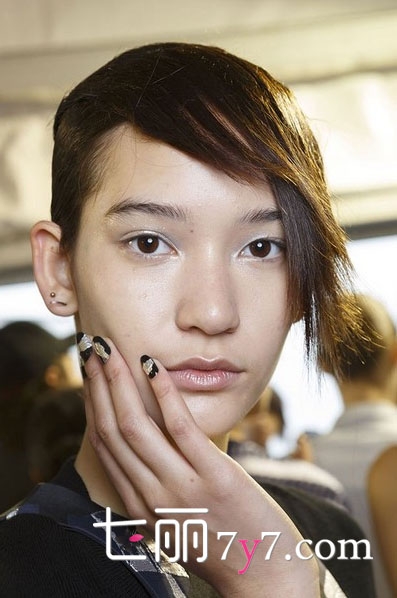 可以利用金箔纸或者闪亮色系甲油来实现金属质感。在KENZO 2015春夏秀场,模特们以不同颜色的甲面搭配贴在指甲中间的金银色箔片。Tadashi Shoji 则是选择了交叉十字形的涂法。如果说春季流行的趋势,则是将底色换成嫩粉色或者蓝色。