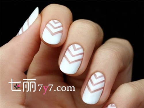 白色的指甲看上去一尘不染,最是简洁干净的代表,层层镂空的箭头图案为这单调的颜色上加了不少灵动性。