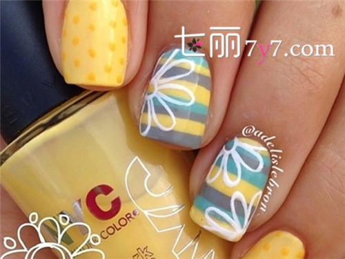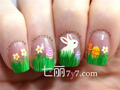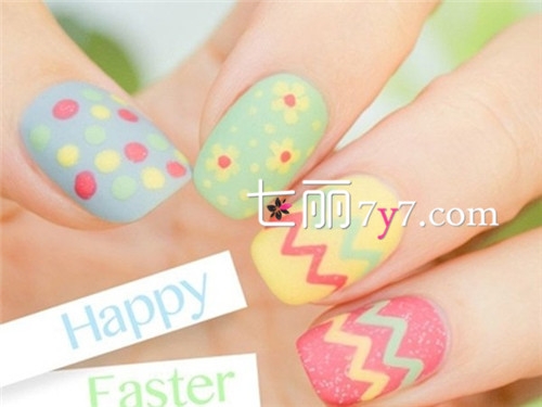 看似简单的图案画在圆润的指甲上也需要很熟练的技术才行,明亮的配色让你永远16岁。