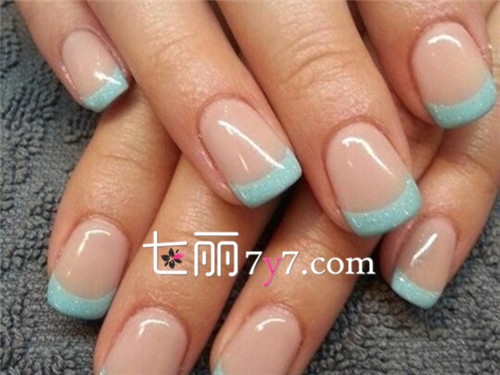 冰蓝色法式美甲
