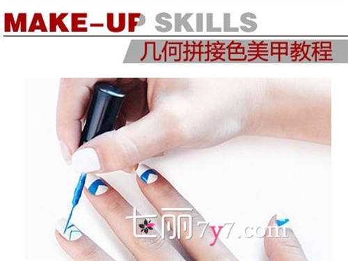 几何美甲怎么做,几何美甲教程,撞色美甲教程