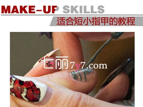 Step6:中指用红色甲油涂,这样穿插着来是不是很有意思?