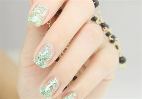 设计特色:孔雀五彩彩片环保指甲油是一款很适合夏天涂的指甲油,翠绿的颜色中惨和着水晶亮片,是一款非常适合户外结婚新娘选用的美甲,低调奢华的美,既不张扬也不失档次。这款指甲油将森林的颜色绘画在了指尖,让森林玩转在你的手指之间。