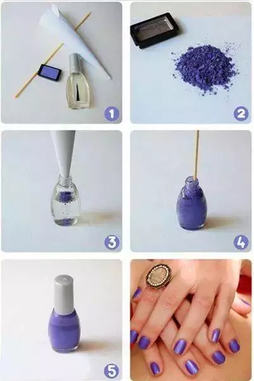 很多女生都会买很多盘眼影,但是由于眼影的用量比较少,一不小心就过期了,如果就这么丢掉了未免太浪费了,今天小编教大家用废旧的眼影做成指甲油,废物利用才是勤俭持家的好女生哦!