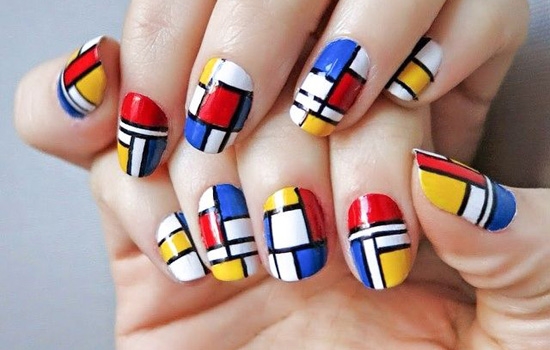 根据著名荷兰画家蒙德里安的经典的作品来设计的一款几何拼接美甲,看上去整个人都变得活泼起来,让指尖成为一道独特的风景。