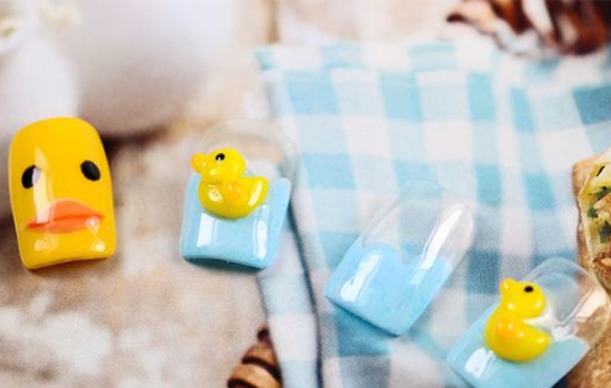 大黄鸭的经典形象还在我们脑海中挥之不去,因为它的创意来源于小时候洗澡的浴缸小黄鸭,也是因为这样,才使得大黄鸭再次成为经典,今天,小编也想来跟大家玩一下经典,我们要把经典小黄鸭搬到指甲上去,可爱的小黄鸭在指甲上也是别有一番趣味的。