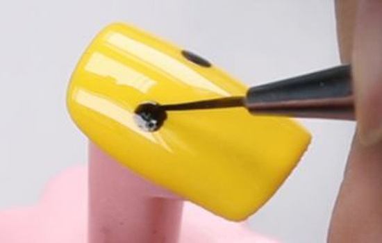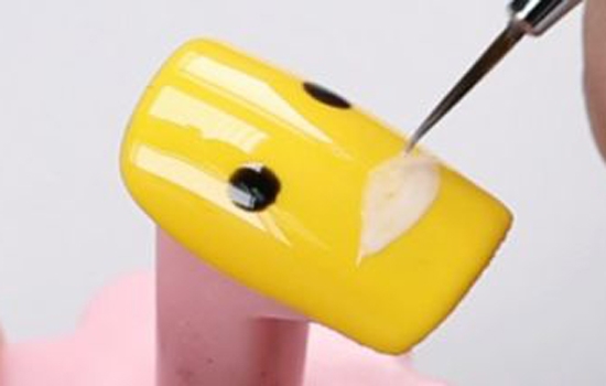 1.完成底色后,用小笔沾取黑色甲油胶画出眼睛,照干