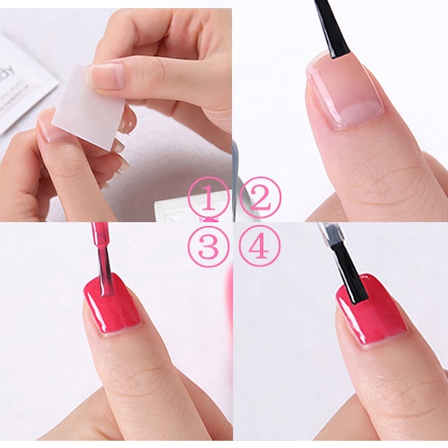 使用撕拉甲油同款的透明水,快速且轻薄的涂抹于指甲表面,作为基底层,如果不小心涂抹在了指甲以外的地方,可以用小工具迅速的去除,保持指甲边缘的整洁。