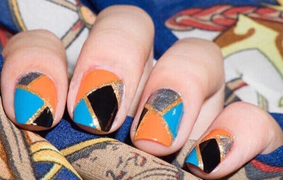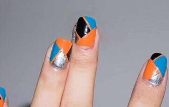 几何美甲怎么做,几何美甲教程,撞色美甲教程