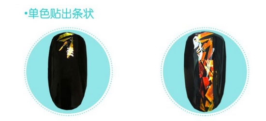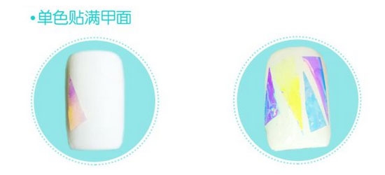 涂好单色后,将剪好的玻璃铂纸贴于甲面,可以剪成大小不一样的形状,让款式更随性。