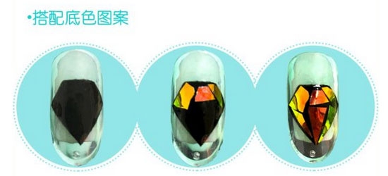 这款玻璃幻彩美甲图案,无论做手款还是脚款,简约单色或是搭配图案、钻饰都很好看哦。