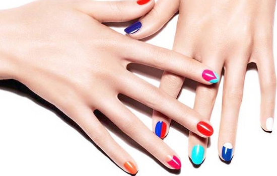 色彩繁杂的波普印花(白色+淡蓝色+黄色+红色+橙色+蓝色+黑色)。搭配完美你就赢了!可以先用白色指甲油打底,然后点上淡蓝色、黄色、红色、橙子、蓝色以及黑色,记住每种颜色之前要有相应的距离。