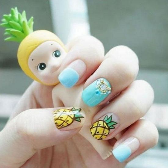 短指甲的妹子,来一款小清新风格的美甲吧。而最小清新风格的,莫过于韩式美甲了。韩式美甲不仅小清新而且还很可爱,这样一款可爱的图案,最能满足少女心的你了。快来get图案吧!