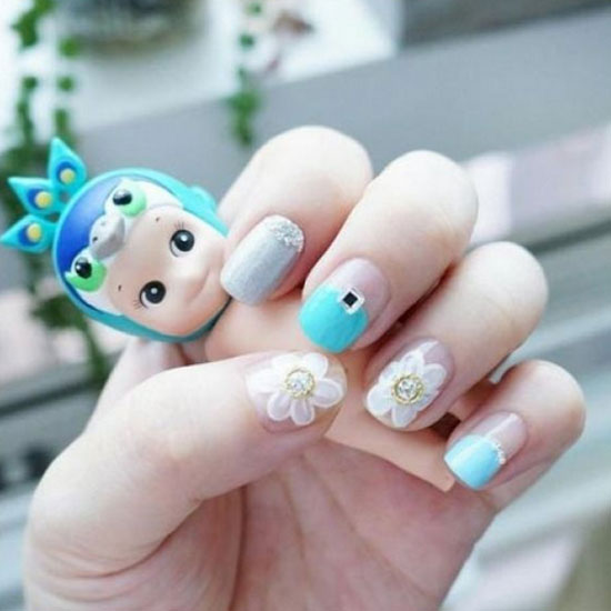 2015短款韩式小清新美甲,2015短款韩式美甲图片,2015短款式美甲韩式