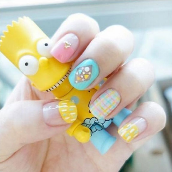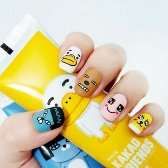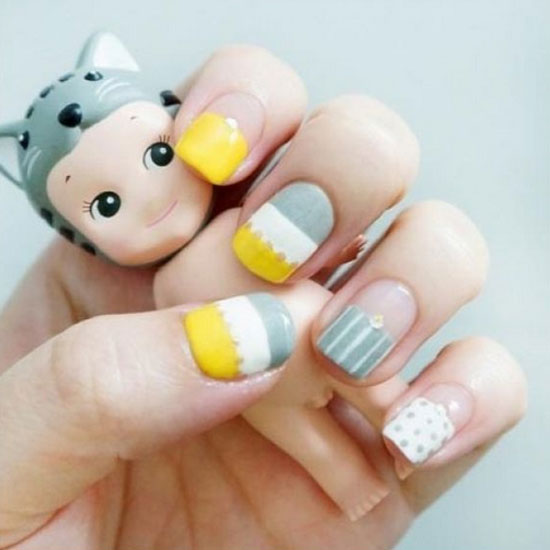 短指甲的妹子,来一款小清新风格的美甲吧。而最小清新风格的,莫过于韩式美甲了。韩式美甲不仅小清新而且还很可爱,这样一款可爱的图案,最能满足少女心的你了。快来get图案吧!