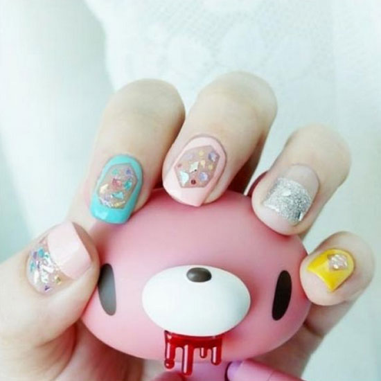 2015短款韩式小清新美甲,2015短款韩式美甲图片,2015短款式美甲韩式
