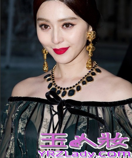 小编点评:冰冰奢华的配饰也成为亮点,金色花朵吊耳环搭配她的复古红唇妆,搭配上这身透视装整个感觉冰冰诠释出东方艳后的妩媚风情。