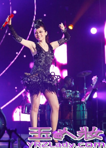 小编点评:舞台上的张靓颖奔放大气,这身黑色羽毛裙装,复古风格却不失现代的气质,黑色更是酷酷感。