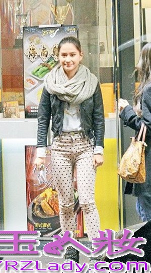 小编点评:何超莲也是个时尚达人,这身装扮可以说是大展潮人的风范儿,超大围脖搭配皮衣外套,波点紧身裤搭配铆钉雪地靴,很时髦。