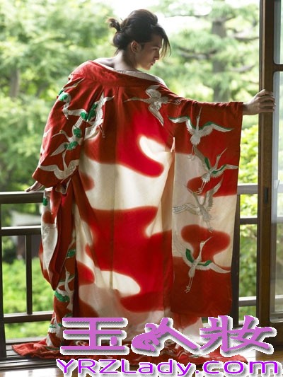 小编点评:邱泽日本艺妓的装扮,尽显妖娆。大红色的和服,印着艳丽的图案,邱泽竟如同女生般妩媚。