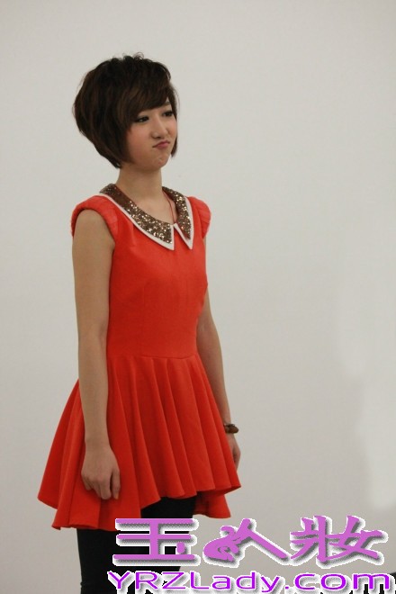 小编点评:洪辰昔日俏皮的装扮,娃娃领大红色假裙装大展小女生羞涩的一面,可爱的表情萌翻天。