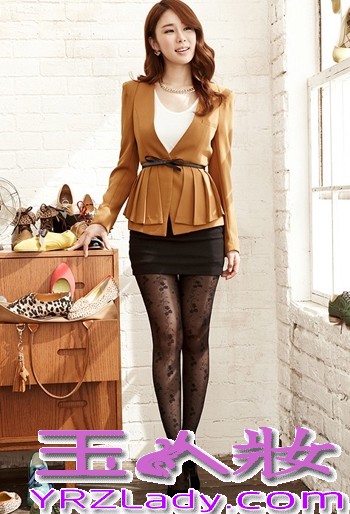 小编点评:姜黄色外套搭配黑色包臀裙,很适合高挑纤细女生穿着,加上一条蝴蝶结腰带能够拉长刘仁娜身材比例。