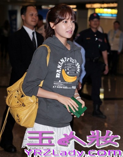 小编点评:少女时代秀英,身材高挑的她,简单的一件灰色带帽卫衣搭配一条蕾丝白短裙就很美,个性中带着甜美范。