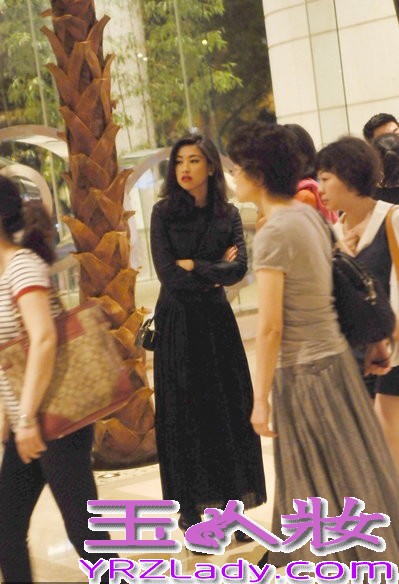 小编点评:朱朱复古红唇妆容搭配上这身黑色的装扮,整个感觉气场十足。