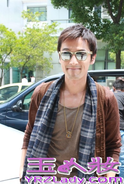 小编点评:咖啡色外套搭配蓝色格子围巾,如此休闲惬意的胡歌心情大好,面对镜头很腼腆的一笑。
