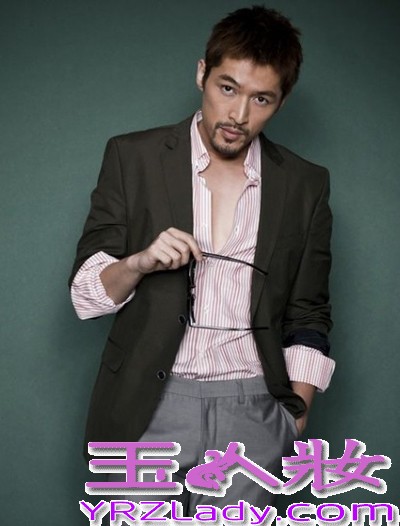 小编点评:粉色条纹衬衫搭配绿色西装,将两种不同风格的颜色进行混搭有种随性不羁的感觉,加上胡歌脸上的胡子很MAN。