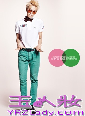 小编点评:白色POLO衫搭配绿色牛仔裤,简单的蝴蝶结和墨镜让权志龙时尚且颇具男人魅力。
