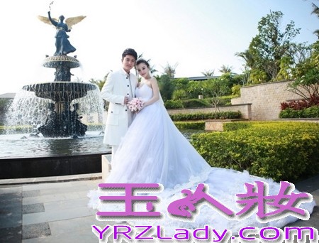 小编点评:美丽浪漫的喷水池,阳光清新的欧式庭院,李小璐身着一袭洁白的抹胸式拖地婚纱,甜蜜地依偎在帅气阳光的贾乃亮身旁,看上去十分浪漫唯美!
