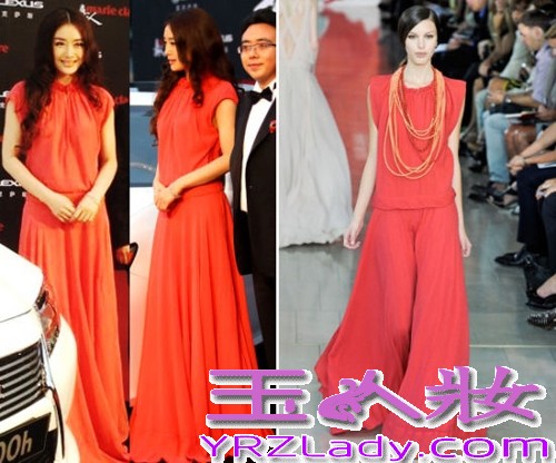 小编点评:青岚一身着Tory Burch 2012春夏系列大红色长裙亮相十分的抢眼,完美的展示出了小女人的气场。