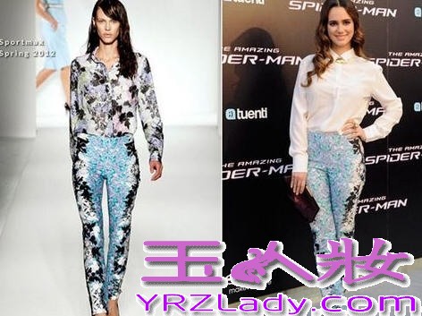 小编点评:Alicia Sanz整身装扮,时尚又个性,简洁却很有型,经典的白衬衫搭配印花风格的紧身裤与粗跟凉鞋,让时尚与优雅同存。