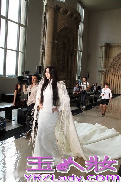 范冰冰白色长裙礼服登巴黎时装周T台 尽显高贵女神范儿