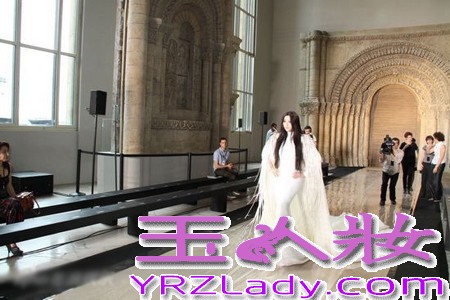 范冰冰白色长裙礼服登巴黎时装周T台 尽显高贵女神范儿