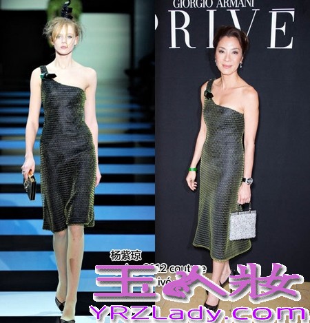小编点评:近日,杨紫琼携未婚夫出席2012秋冬巴黎高级定制时装周现场,身穿一袭优雅内敛的斜肩连衣裙,搭配银色手袋和黑色鱼嘴高跟鞋,十分高贵大方!