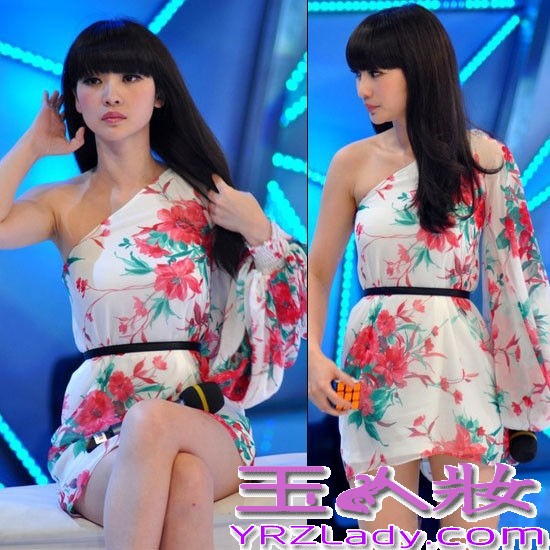 小编点评:印花图案单肩裙装,柳岩穿起这身装扮完美的秀出了各个部位,长秀傲人的胸围,下秀迷人的美腿,举止之间展露性感妩媚风情。