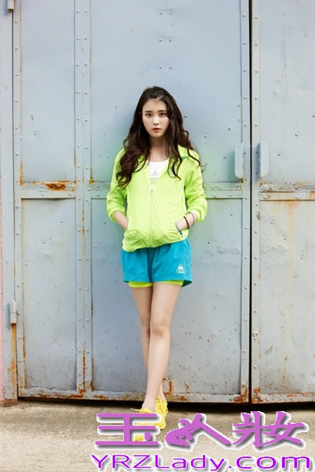 小编点评:黄绿色运动上衣,搭配蓝色运动短裤,IU运动风席卷我们的眼球,整个气质非凡。