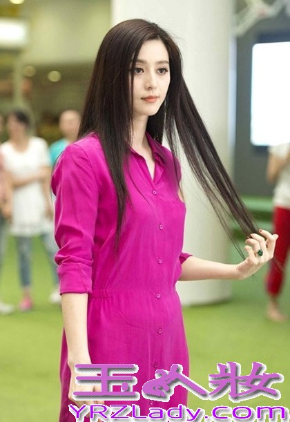 桃红色衬衫长裙,都说衬衫是最好凸显气质的。这样的装扮让范冰冰像极了都市白领。