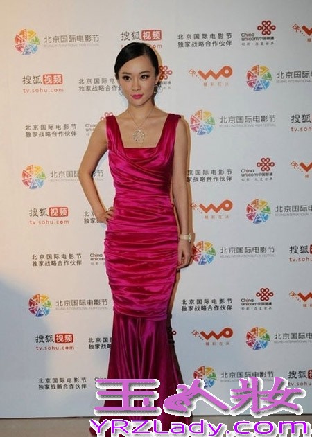 乍一看,还以为是条桃色美人鱼呢,美人鱼式的长裙,将霍思燕的好身材展现的淋淋尽致。红唇妆容和桃色长裙惊艳全场。