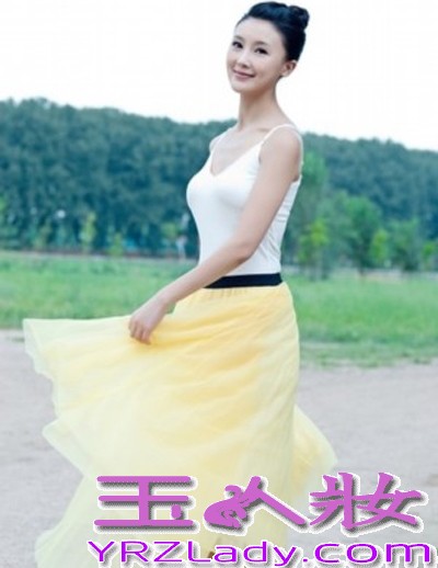 小编点评:清新的白色小背心搭配今夏超流行的飘逸纱裙,轻盈舞动的样子犹如掉入凡间的精灵。搭配清爽利落的盘发,带有一种小清新式的性感味道!