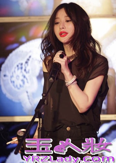 小编点评:黑色的雪纺透视上衣轻盈飘逸,不对称的袖子设计充满了性感味道,搭配黑色牛仔裤,妩媚又不失帅气感觉!热辣浓烈的红唇妆容奔放性感,很贴切摇滚酒吧歌手的角色感觉。