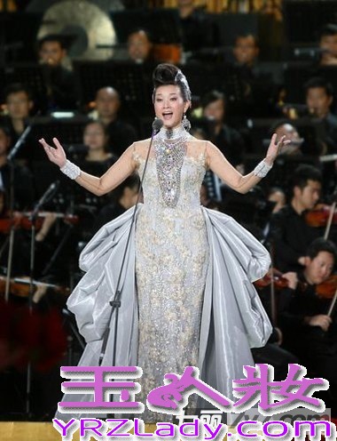 小编点评:在2009年北京鸟巢魅力中国音乐会上,宋祖英一袭银色镶钻礼服华丽登场,瞬时间整个场地都聚集在了她身上,华丽璀璨亮眼整个鸟巢。