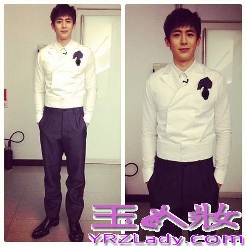 小编点评:白色修身短版外套完美展现尼坤绅士品格,胸前黑色装饰物将儒雅演绎到底。