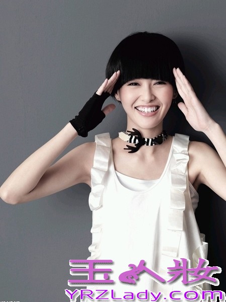 小编点评:带有荷叶边的无袖白色连衣裙与俏丽的短发,再搭配甜美的笑容,显得既青春又有活力。