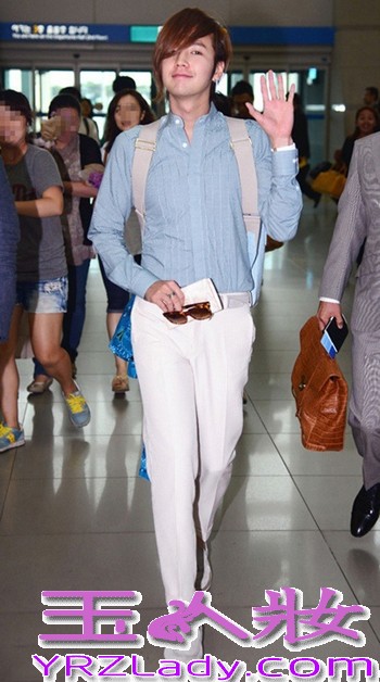 小编点评:条纹蓝色衬衫搭配白色休闲裤,和白色帆布鞋,清新的休闲装扮,让张根硕看上去更显气质。
