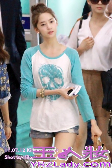 时尚点评:长T上衣+牛仔短裤,最经典搭配。