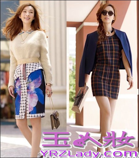 小编点评:左图米色粗棒针织衫搭配高腰印花裙,舒适显身材,给人清新靓丽的感觉。右图格子连衣裙搭配蓝色小西装,干练女人味十足。